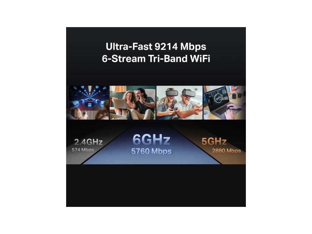 - Rychlé třípásmové připojení s celkovou rychlostí až 9 214 Mbps