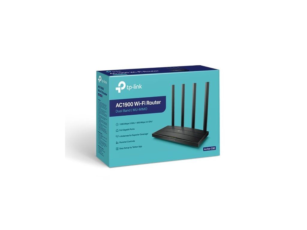 WiFi router TP-Link Archer C80 AC1900 dual AP, 4x GLAN,/ 600Mbps 2,4/ 1300Mbps 5GHz, EasyMesh, 52440003