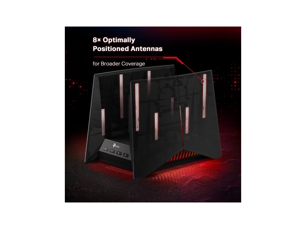 Technologie Wi-Fi 7 zaručuje neuvěřitelný výkon. Oproti předchozím verzím tohoto rozhraní vám poskytne rychlejší propustnost, nízkou latenci a vyšší účinnost datových přenosů. Širší pokrytí signálem zajišťuje 8 optimálně umístěných antén. Komínová struktura efektivně odvádí teplo.