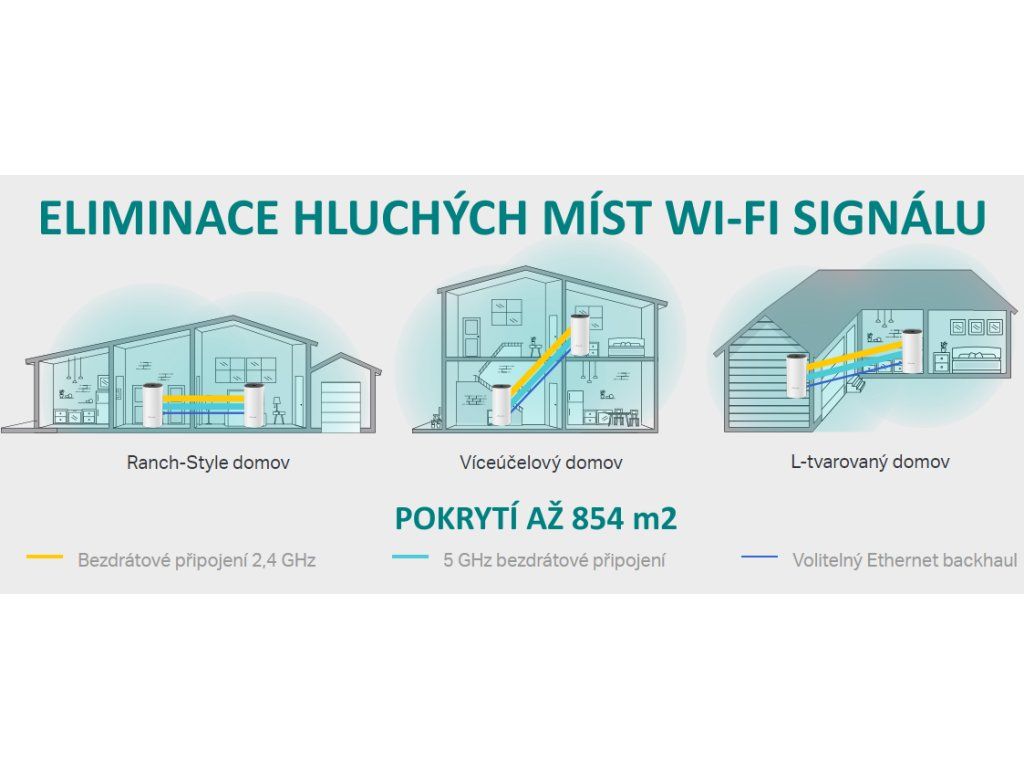 Tento balíček Deco M4 poskytuje Wi-Fi na ploše až 854 čtverečních metrů