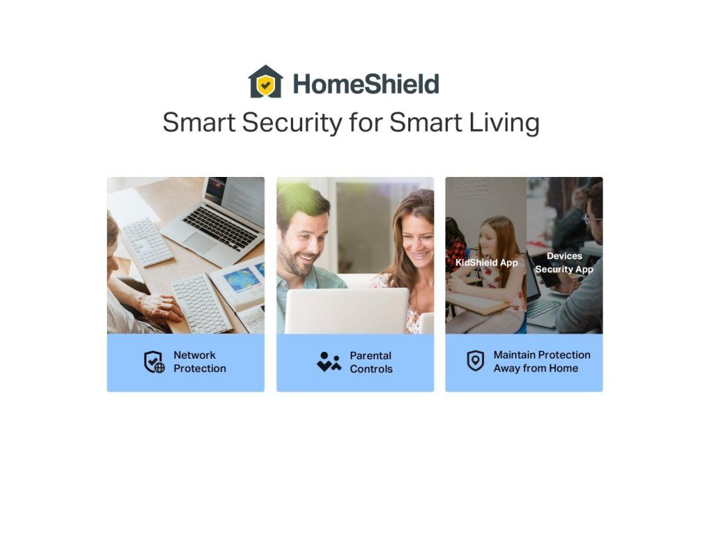 - Zabezpečení: WPA/WPA2/WPA3, SPI firewall, HomeShield