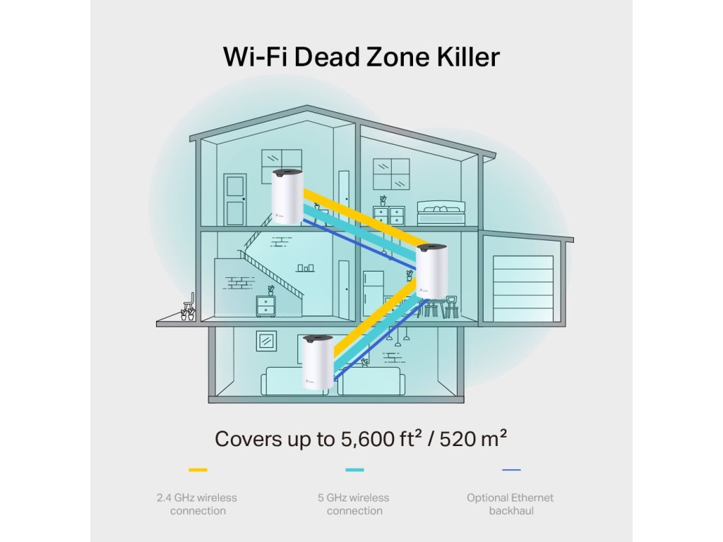 technologií Mesh (802.11k/v/r) spolupracují jednotky na vytvoření jednotné domácí či