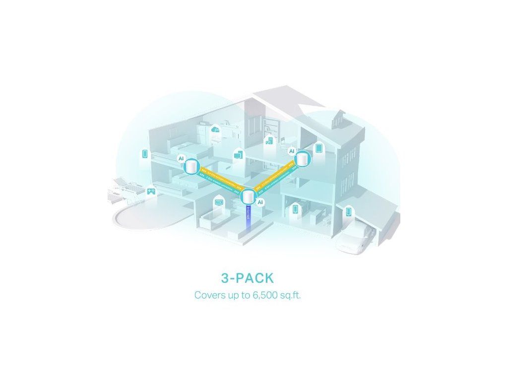 - Wi-Fi dosah: 1-3pokojový dům (1-pack), 4-6+ pokojový dům (3-pack)