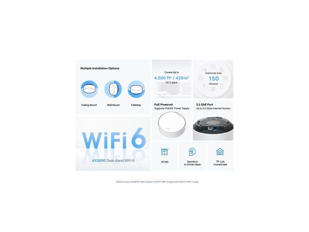 WiFi router TP-Link Deco X50-PoE(1-pack) WiFi 6, 1x 2,5GLAN, 1x GLan s PoE, 2,4/ 5GHz AX3000, 52449851