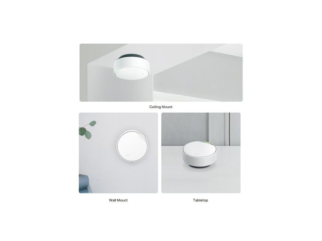 Jednotky zprovozníte velmi jednoduše. Každým krokem vás provede šikovná aplikace Deco, kterou si stáhnete do mobilního telefonu. Místo, kam router umístíte, si vyberete velmi jednoduše. Postavte ho na stůl, namontujte ho na stěnu nebo ho nainstalujte na strop. Záleží na vás. Jednotky mají malé rozměry, proto vám nikde nepřekáží.