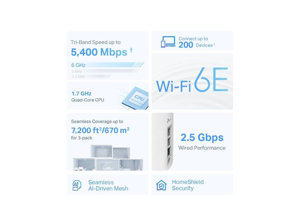 WiFi router TP-Link Deco XE75 Pro(3-pack) AXE5400, WiFi 6E, 1x 2.5GLAN, 2x GLAN / 574Mbps 2,4GHz/ 2402Mbps 5GHz/ 2402 6G, 52449746