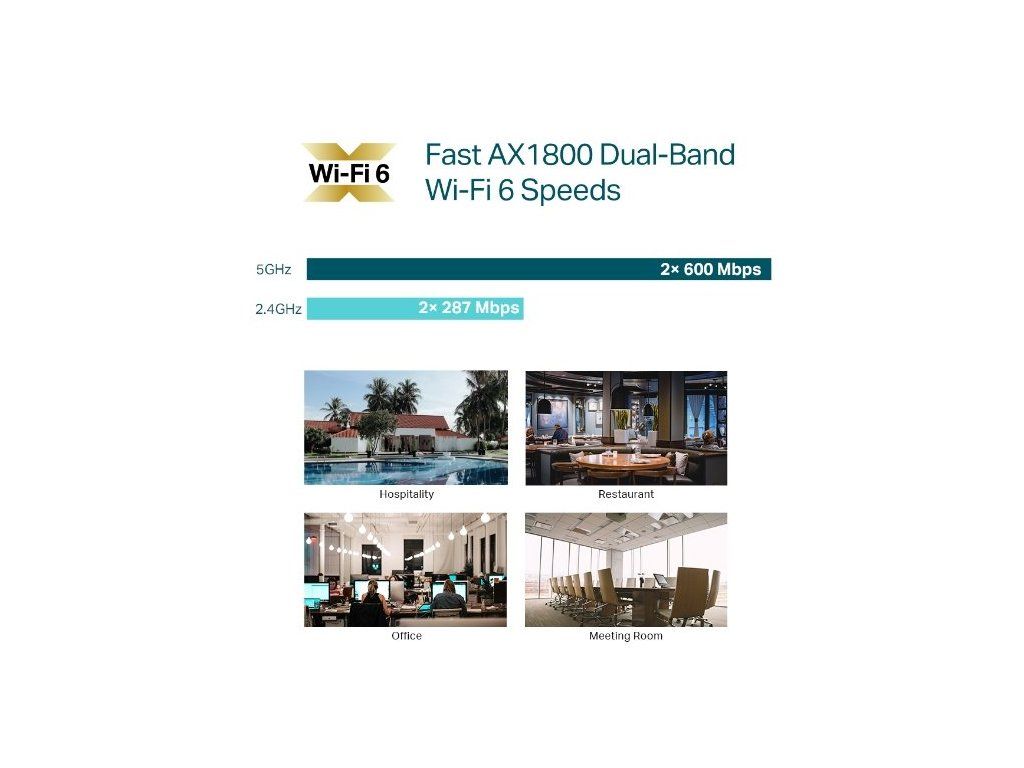 Kompaktní přístupový bod TP-Link EAP613 AX1800 s podporou Wi-Fi 6 a s maximální rychlostí až 1 775 Mbit/s se hodí pro montáž na stěnu či strop. Stane se praktickým pomocníkem v domácnosti, kanceláři, hotelovém pokoji, školní třídě, restauraci a kdekoliv jinde, kde je zapotřebí rychlé a stabilní připojení.