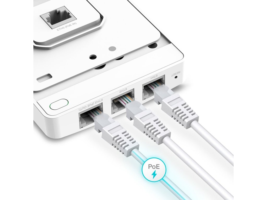 Nástěnný přístupový bod TP-Link EAP615-Wall(5-pack) využijete především v domácnosti nebo kanceláři. Poskytne vám kvalitní připojení k síti Wi-Fi 6. K dispozici máte 4 plně gigabitové ethernetové porty, z toho 1 je výstupní a 3 vstupní. Jeden ze vstupních portů navíc podporuje napájení PoE 802.3af/802.3at. K přístupovému bodu připojíte například VoIP telefony, tiskárny, počítače nebo chytré televize. Nainstalujete ho na stěnu pomocí elektroinstalační krabičky.