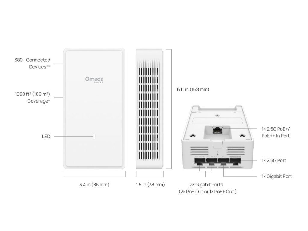 - Management: Omada SDN (HW/SW/Cloud), Omada App, SNMP, WebUI, Zero-Touch