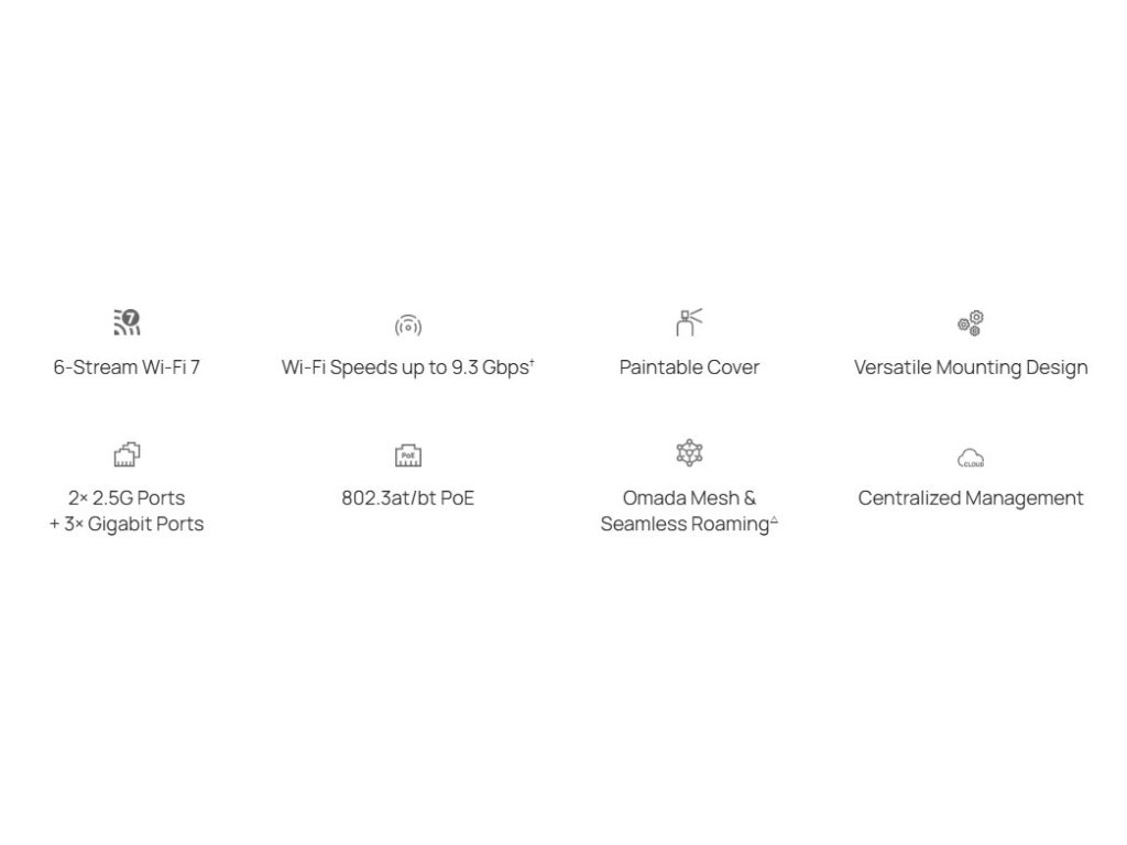 TP-Link EAP775-Wall přináší špičkovou technologii WiFi 7, která kombinuje vysokou přenosovou rychlost, nízkou latenci a vysokou kapacitu. Díky funkcím jako Multi-Link Operation, 4K-QAM nebo 320 MHz šířka kanálu zvládne i náročné síťové zatížení v reálném čase.