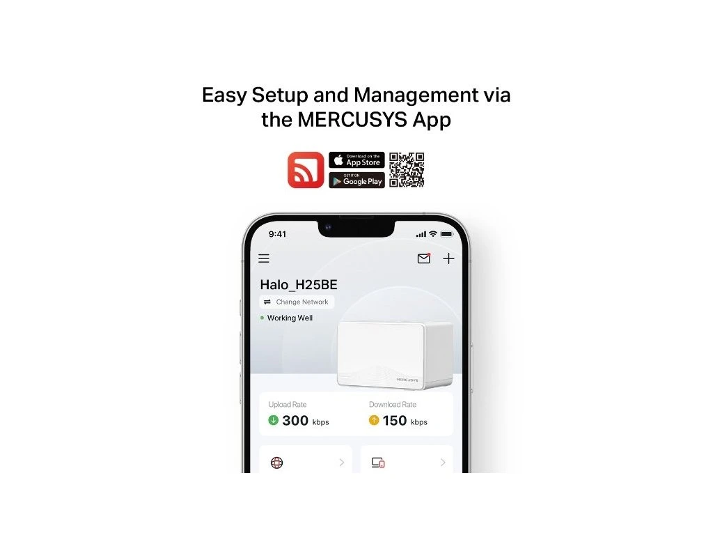 Zprovoznění routeru je jednoduché. Stačí si stáhnout aplikaci Mercusys a následovat pokyny na obrazovce vašeho mobilního telefonu.
