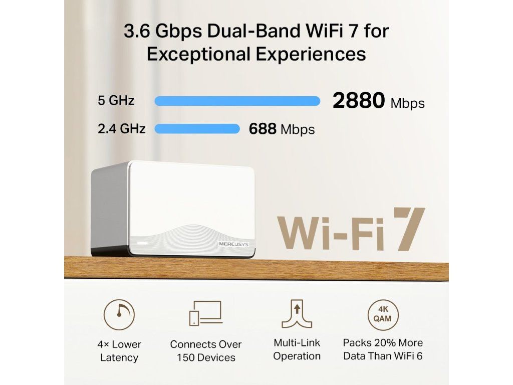 - Nejnovější standard WiFi 7 pro vyšší rychlost a nižší latenci