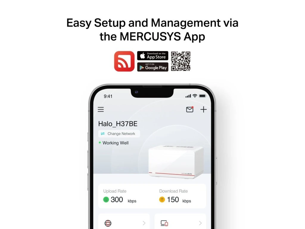 Zprovoznění routeru je jednoduché. Stačí si stáhnout aplikaci Mercusys a následovat pokyny na obrazovce vašeho mobilního telefonu.
