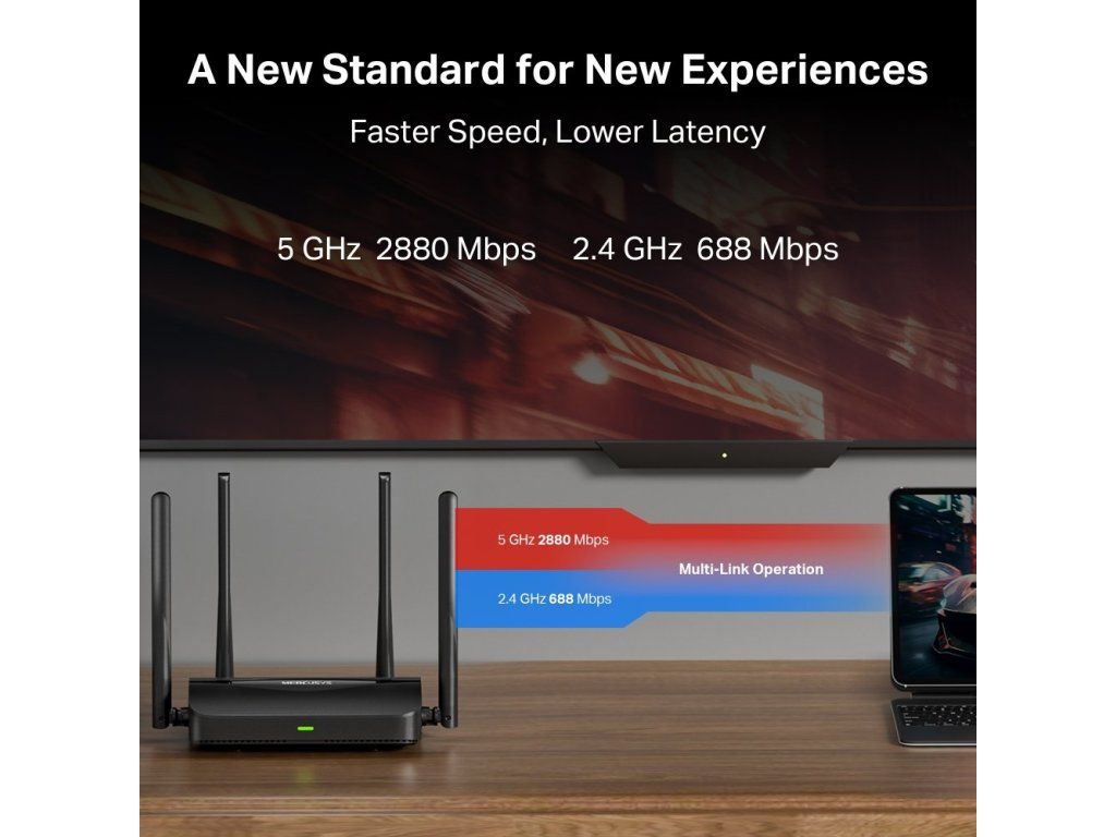 Vylepšete svou domácí síť pomocí routeru TP-Link MERCUSYS MR25BE. Zajistí vám rychlé dvoupásmové Wi-Fi připojení. V pásmu 5 GHz vám poskytne rychlost až 2 880 Mbps. Je vybavený jedním WAN portem s rychlostí 1 Gb/s a 3 LAN porty s rychlostí 1 Gb/s. Připojíte k němu počítač, chytrou televizi, herní konzoli a další podobná zařízení.