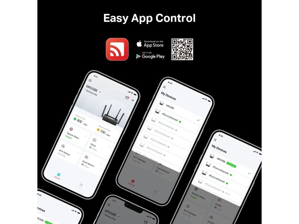 Nastavení routeru vám zjednoduší praktická aplikace MERCUSYS. Stáhněte si ji na svůj smartphone či tablet a postupujte krok za krokem. Během několika minut máte router nastavený a můžete ho využívat. Aplikace je kompatibilní se systémy iOS a Android.