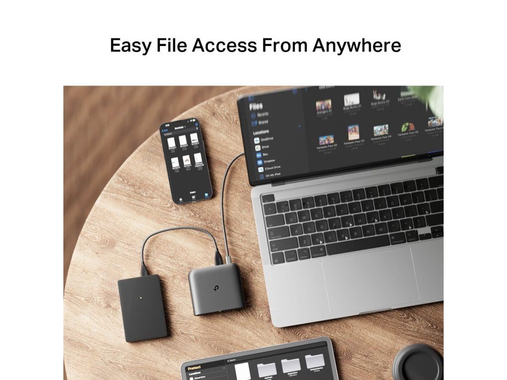 Na routeru najdete 1x plně gigabitový WAN port a 1x gigabitový LAN port pro kvalitní kabelové připojení zařízení, například chytré televize nebo herní konzole. K dispozici máte také USB port pro připojení pevného disku, se kterým tak můžete rychle a bez problému sdílet soubory. Nabíjecí USB-C port využijete v případě, že na cestách potřebujete router dobít pomocí powerbanky.