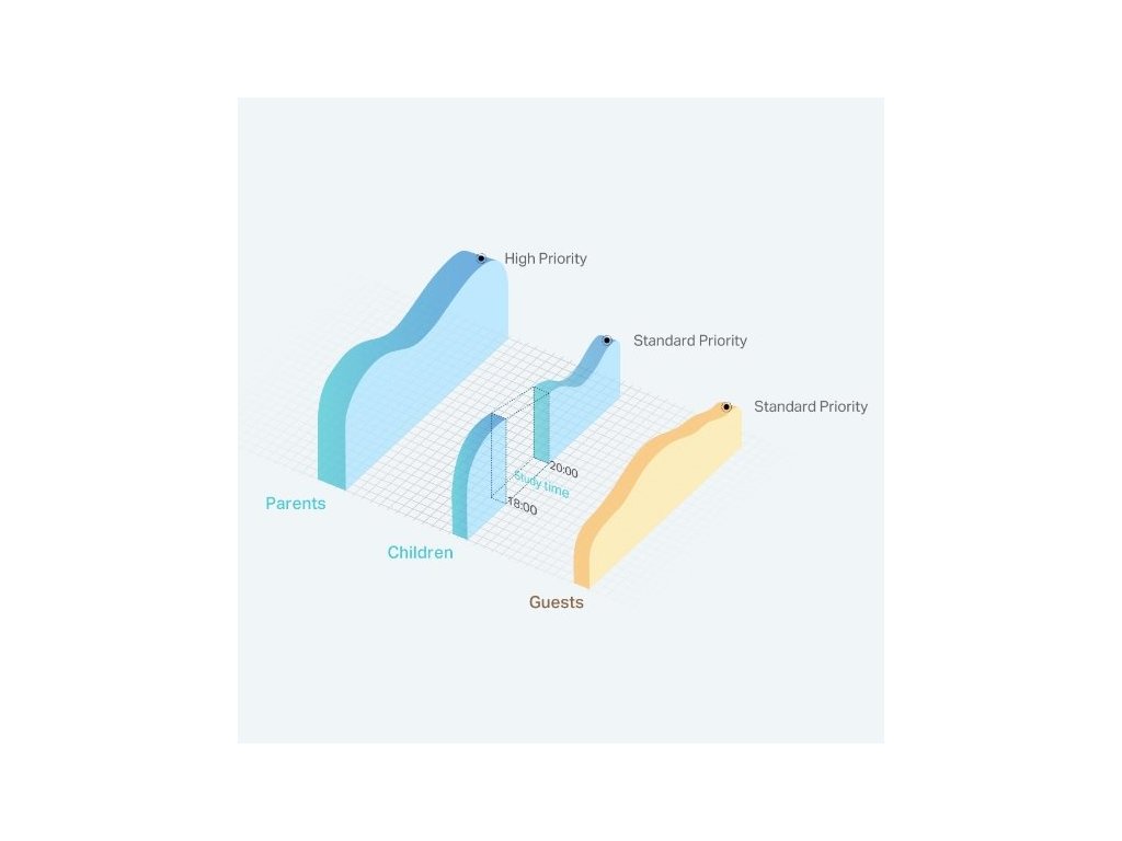 Rodičovská kontrola zajistí osobní a odpovídající přístup k internetu pro každého člena rodiny. Úrovně filtrů a časové limity pomohou s kontrolou těch nejmenších, kdy můžete blokovat určité URL adresy nebo naplánovat časy, kdy se zařízení pro děti může připojit k internetu.