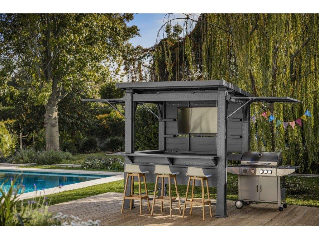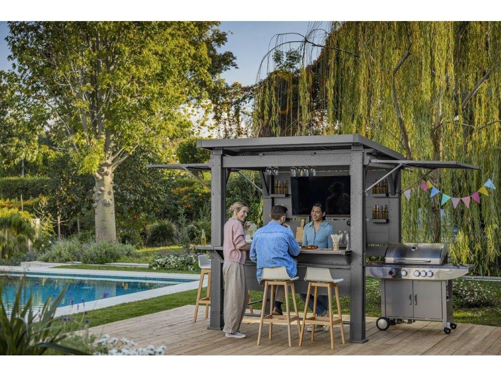 Zahradní altán Keter BAR-B-Q Gazebo představuje praktický přístřešek na gril i stylový bar v jednom. Díky rozměrům až 413 x 238 x 200 cm a stabilní konstrukci o hmotnosti 135 kg vytvoří ideální zázemí pro každou zahradní párty.