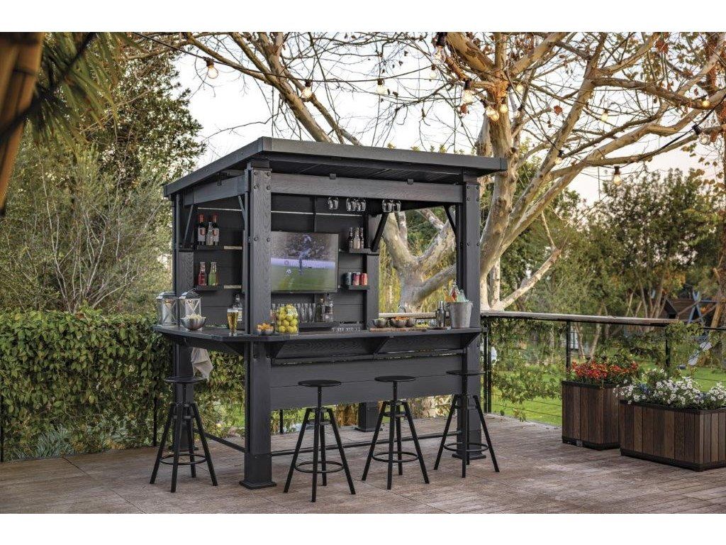 Zahradní altán Keter Bar Gazebo propojuje stylový venkovní bar a praktický přístřešek v jednom. Stabilní konstrukce o hmotnosti 120 kg a rozměry 230 x 238 x 200 cm vytvoří ideální zázemí pro posezení s rodinou i přáteli.