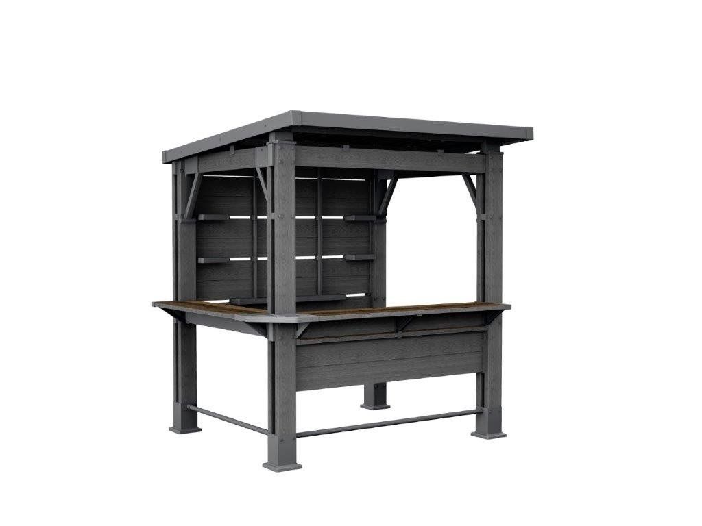 Rozměry altánu 230 x 238 x 200 cm zajišťují dostatek prostoru pro pohodlnou obsluhu i pohyb kolem pultu. Robustní konstrukce o hmotnosti 120 kg přispívá k vysoké stabilitě při každodenním používání. Produkt dodáváme v balení o rozměrech 227 x 117 x 28,5 cm s celkovou hmotností 130 kg.
