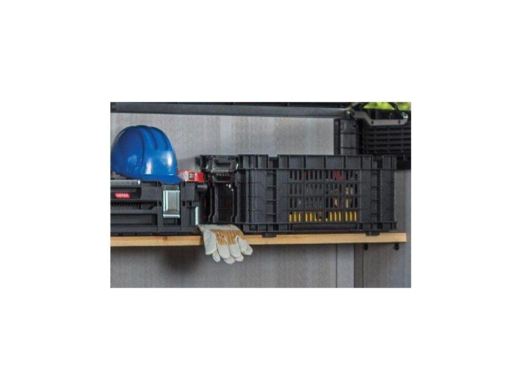 Pokud potřebujete uschovat menší věci, jistě oceníte možnost přidání police. Úchyty najdete v balení. Abyste všechno uchovali v bezpečí, dají se dveře uzamknout. Ventilační systém navíc zajišťuje odvětrávání a brání hromadění nepříjemných pachů.