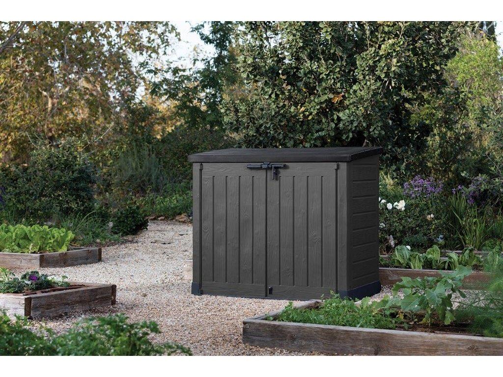 Potřebujete bezpečně uskladnit popelnice, nářadí nebo bazénovou techniku? Uzamykatelný přístřešek Keter Store-It-Out Max nabízí kapacitu 1200 l a odolnou konstrukci, která si poradí i s extrémním počasím, UV zářením i vandalismem. Díky chytrému systému otevírání a možnosti přidání polic se stane praktickým pomocníkem každé domácnosti.