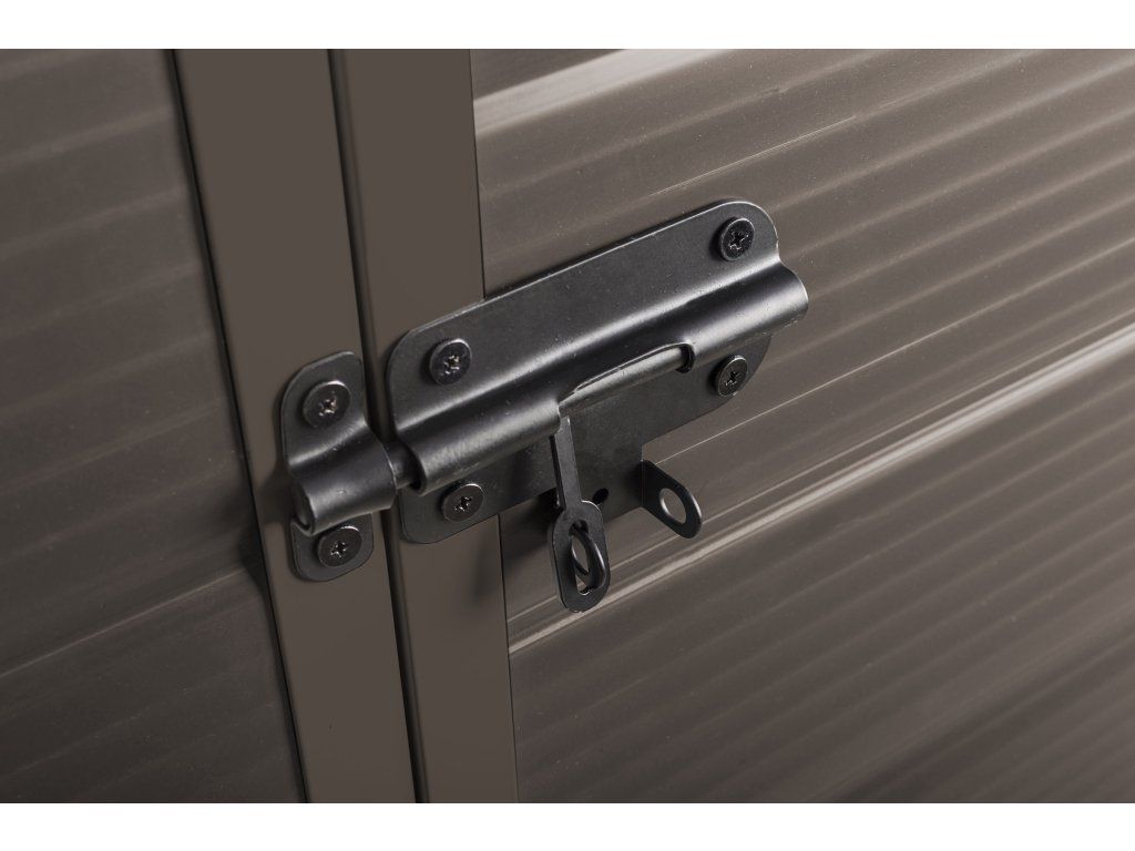 Nad dvoukřídlými dveřmi je umístěna ventilační mřížka, která zajišťuje dostatečné odvětrávání a cirkulaci vzduchu uvnitř domku. Proto se nemusíte bát plísní nebo srážení vody na stěnách v případě náhlých změn teploty.