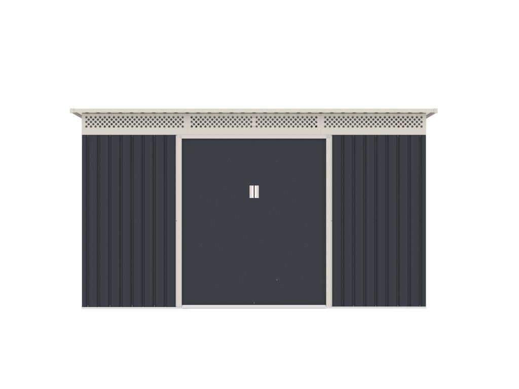 Zahradní domek GRAH 915 má dvoukřídlé dveře o celkové šířce 138 cm. Vstup do domku je tak opravdu pohodlný, i když nesete nebo vynášíte objemnější věc.