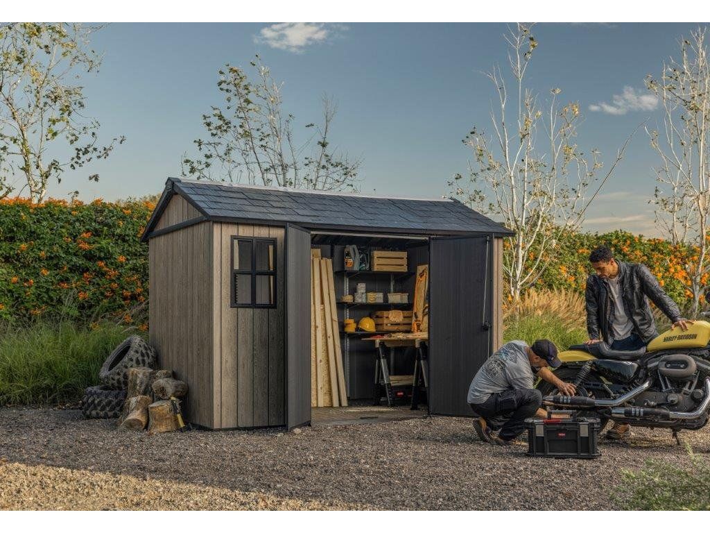 Hledáte odolný a estetický domek pro uskladnění všeho potřebného vybavení? Zahradní domek Keter Apex 7,5 x 11 v elegantní barvě ashwood kombinuje moderní design s mimořádnou odolností a praktičností. Díky podlahovému panelu a ocelí zpevněné střeše hravě zvládne i náročné podmínky.