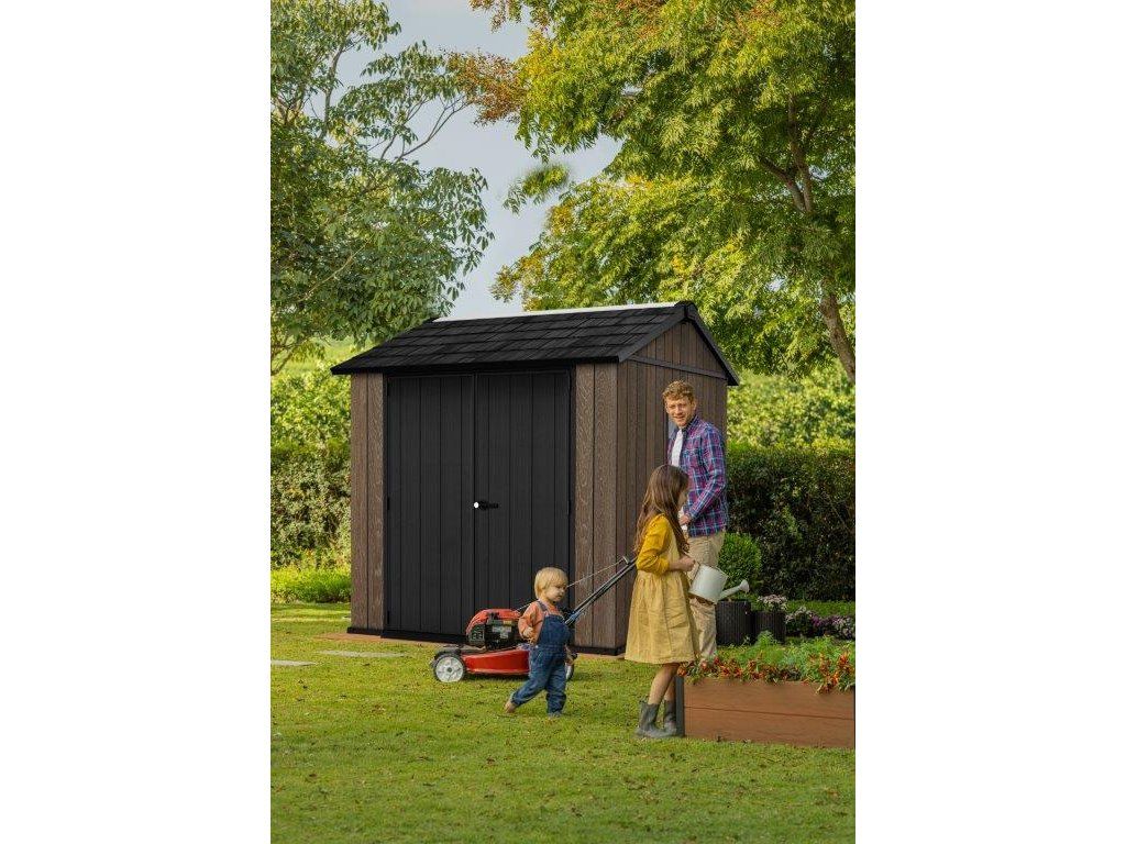 Zahradní domek Keter Apex 7,5 x 7 Walnut, s podlahou, 612043