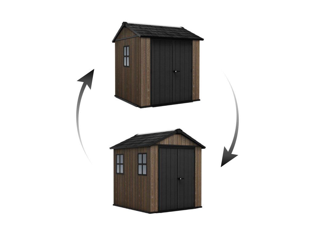 Jednou z největších výhod domku Apex je možnost oboustranného sestavení. Sami si zvolíte, kam umístit okno a dveře, aby se co nejlépe přizpůsobily uspořádání vaší zahrady. Dvojité stěny navíc zajišťují vysokou stabilitu a odolnost konstrukce.
