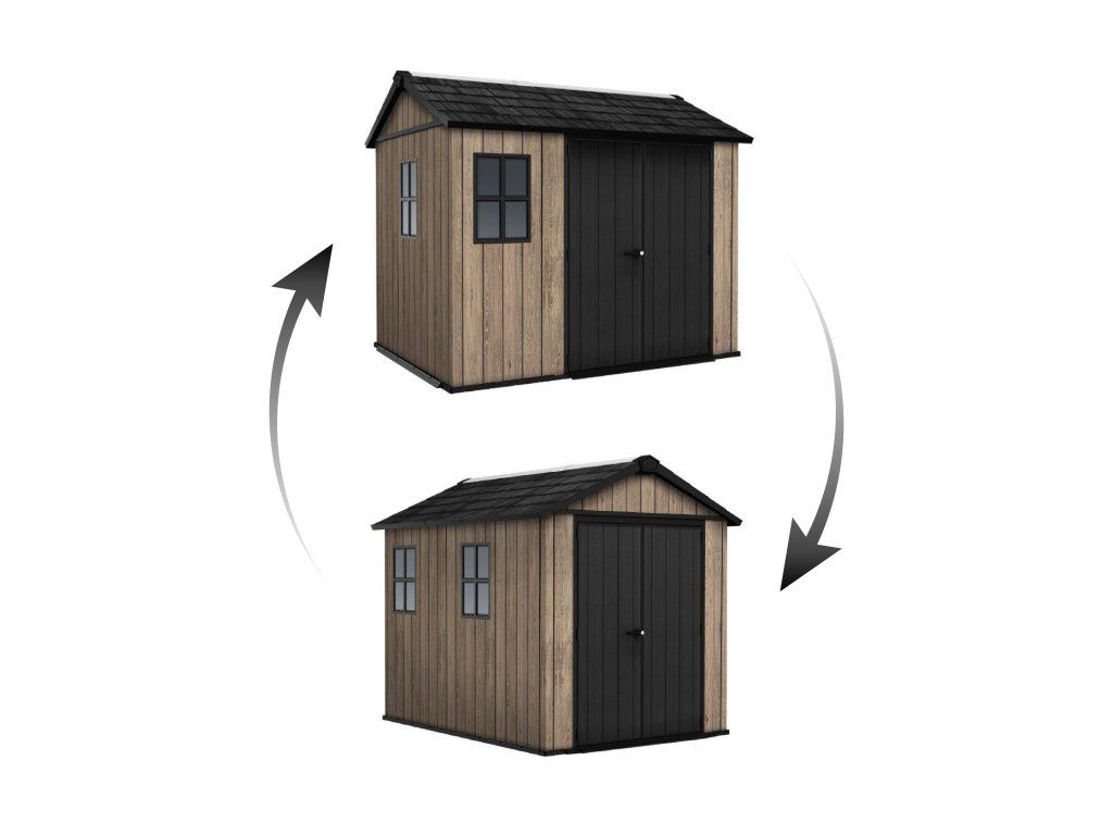 Jednou z největších výhod domku Apex je možnost oboustranného sestavení. Sami si zvolíte, kam umístit okno a dveře, aby se co nejlépe přizpůsobily uspořádání vaší zahrady. Dvojité stěny navíc zajišťují vysokou stabilitu a odolnost konstrukce.