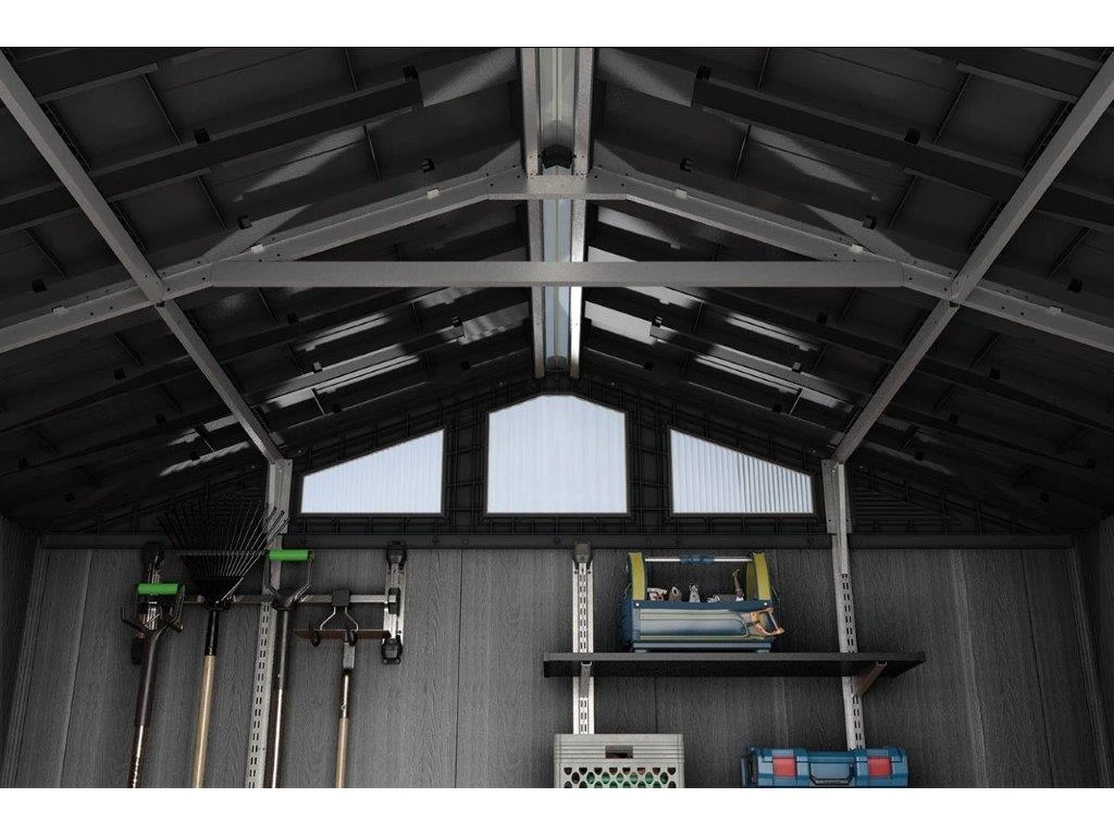 Uskladněte své jízdní kolo, sekačku, zahradní náčiní, bazénovou technologii, dílenské nářadí či jiné vybavení do zahradního domku Keter Stronghold. Poskytne vám dostatečné množství místa na nejrůznější věci. Nemusíte pro ně hledat místo ve své garáži, dílně nebo ve sklepě.