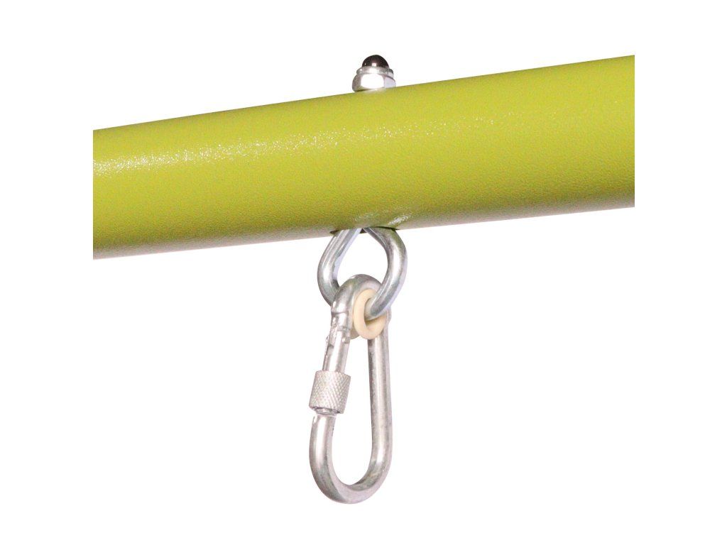 - stabilní konstrukce z ocelových trubek s kovovými oky pro zavěšení houpaček