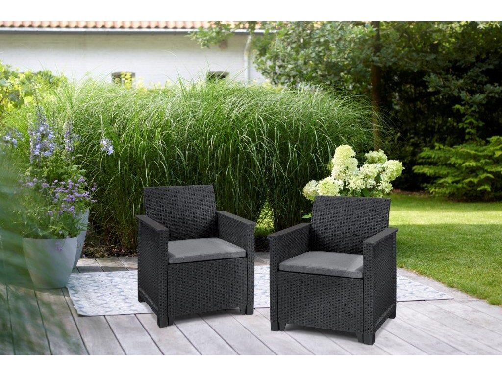 Zahradní křeslo Keter Elodie grafitové 2 ks, 610648