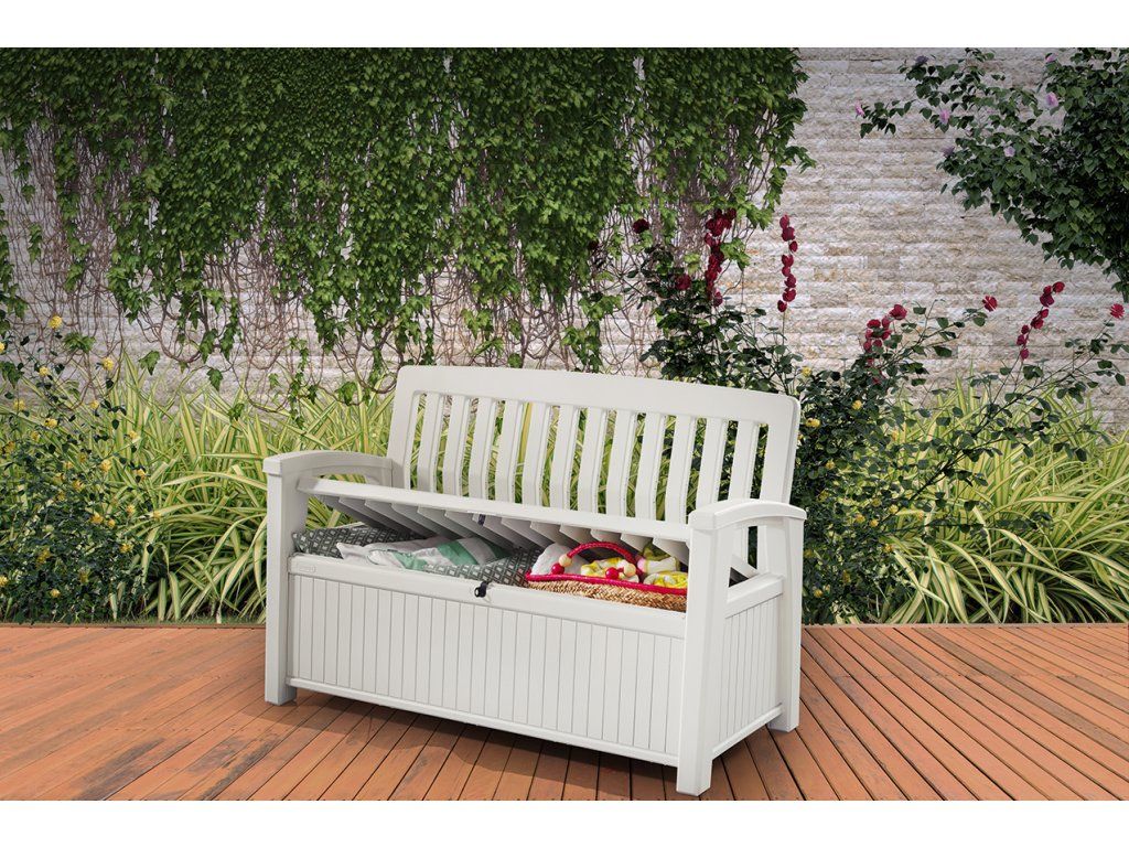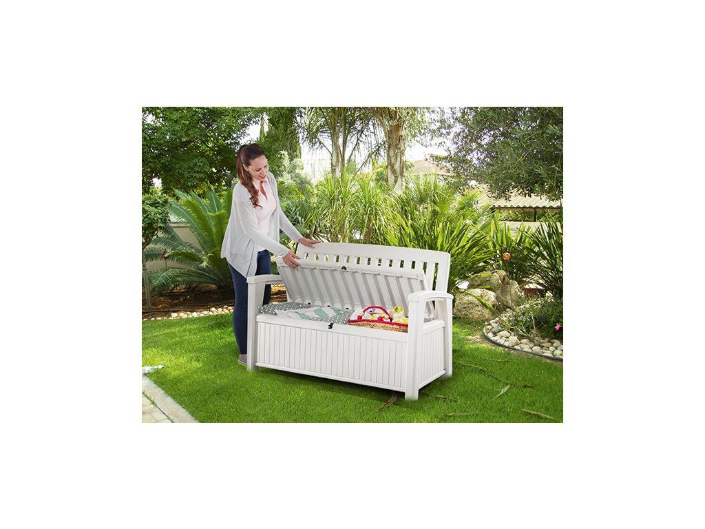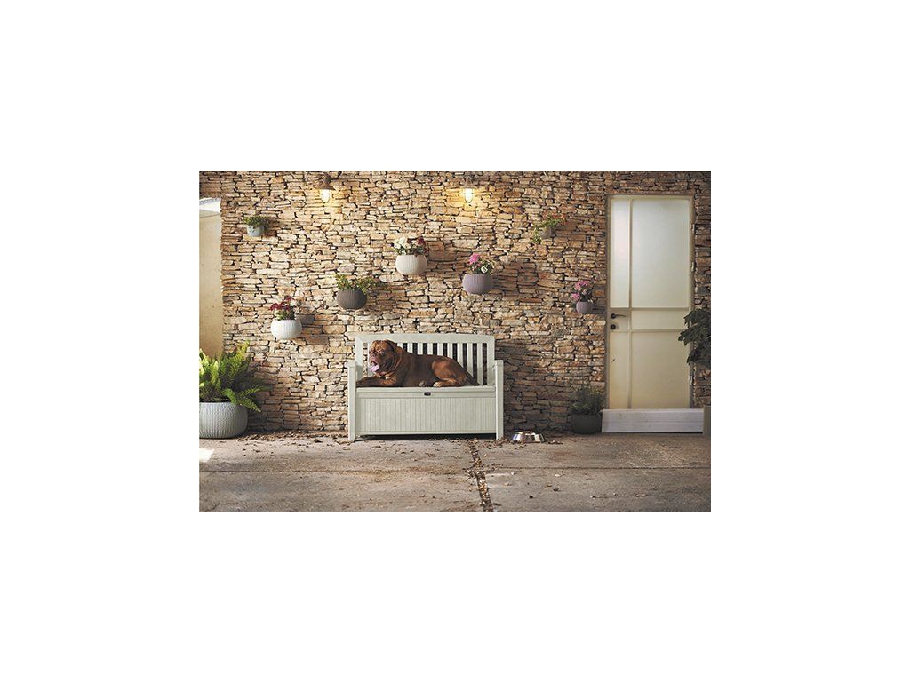 Sháníte praktické a zároveň pohodlné posezení? Pořiďte si zahradní lavici Patio Bench značky Keter, na kterou se bez obav posadí dva lidé. Okouzlí vás její elegantní design v bílé barvě, který věrně imituje dřevo. Do šikovného úložné prostoru pod sedadlem s objemem 227 l můžete odkládat nejrůznější zahradnické náčiní, deky nebo polštáře na sezení. Velkou výhodou je také možnost uzamčení úložného boxu.