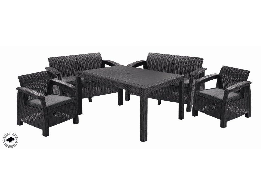 Zahradní nábytek Keter Corfu Fiesta set dvě dvousedačky + dvě křesla + stůl grafitový, 610353