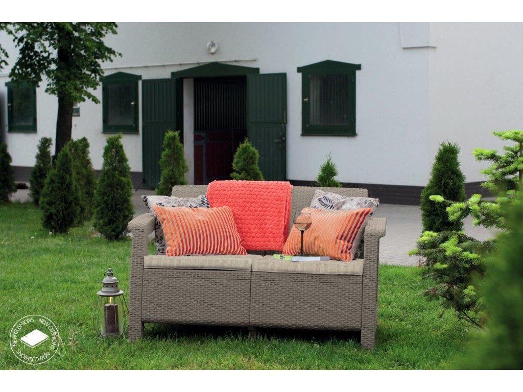 Zahradní dvoumístná pohovka z řady Corfu je nejoblíbenější z řady nábytku Keter, která vás nadchne svým nevšedním designem v imitaci přírodního ratanu. Konstrukce je přitom pevná a vydrží běžné zatížení venkovního provozu.