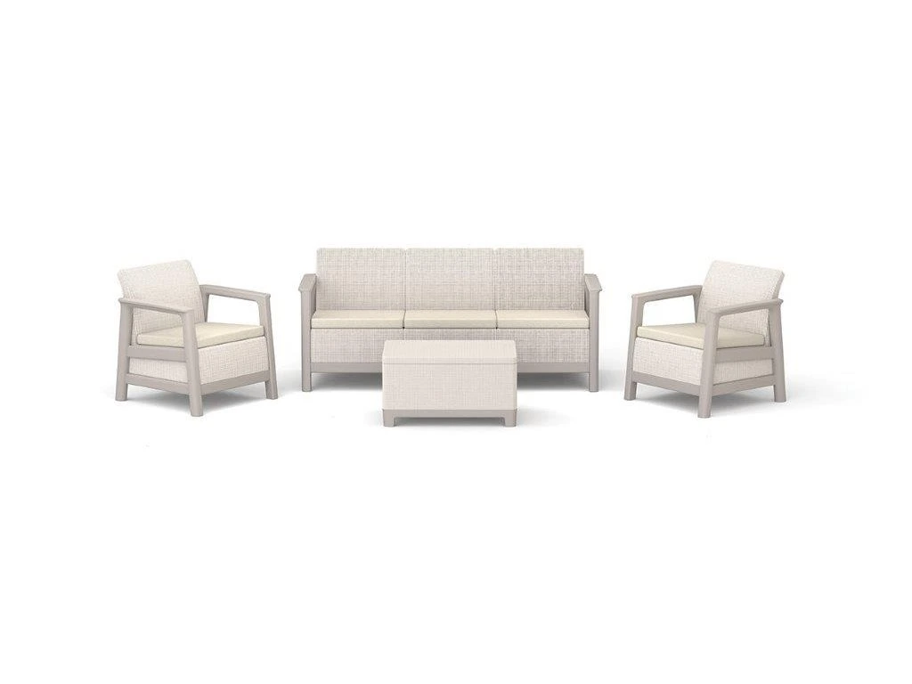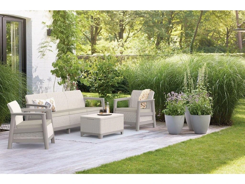 Zahradní nábytek Keter Scandi set třísedadlová pohovka + 2 křesla + úložný stůl béžovo šedý, 612117