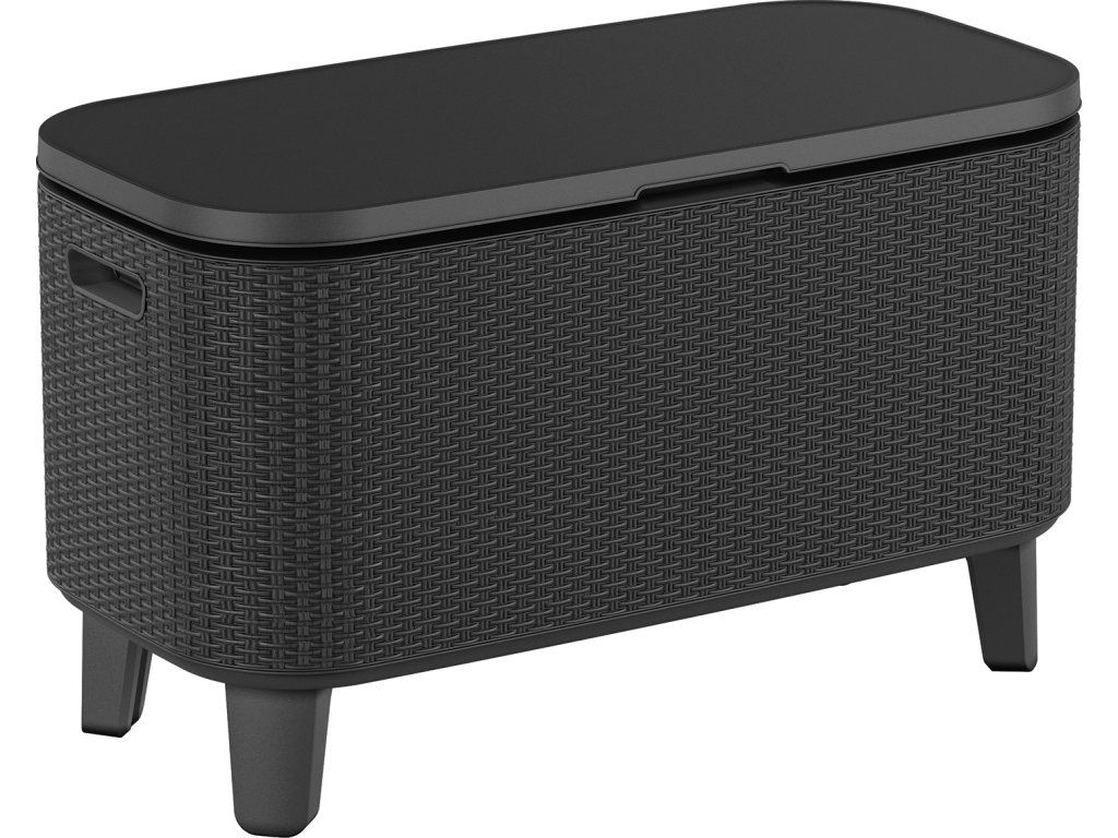 Multifunkční zahradní box Keter Bevy Cool Bar v provedení 2 v 1 může sloužit jako konferenční nebo barový stolek, takže představuje ideální řešení pro víkendová setkání a rodinné oslavy. Poskytuje 60l úložný prostor s nosností až 68 kg, který skvěle poslouží pro různé polštáře, podsedáky a ostatní doplňky vaší zahrady, terasy či pergoly. Hodí se však také pro chlazení nápojů díky dvojitým stěnám. Do vnitřního prostoru jen vložíte led a zahradní párty může začít. Do boxu se vejde až 130 plechovek či 65 láhví. Nosnost horní výsuvné desky v režimu konferenčního stolku činí až 50 kg a jako barový stolek dosahuje nosnosti až 25 kg.