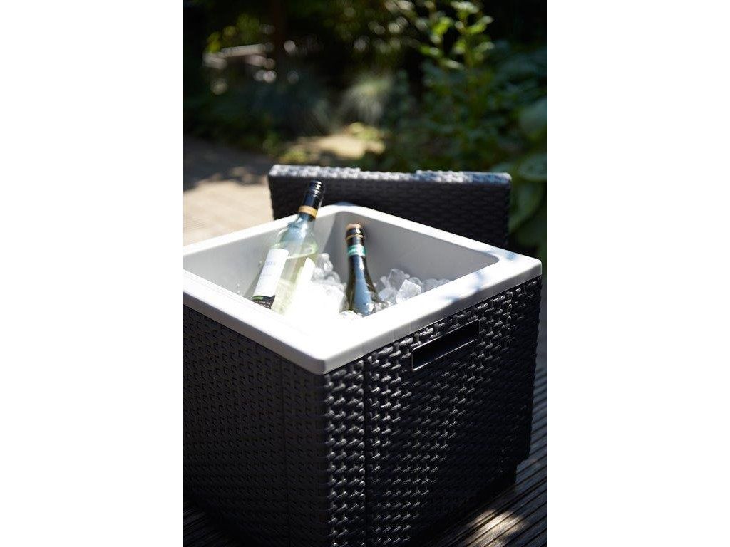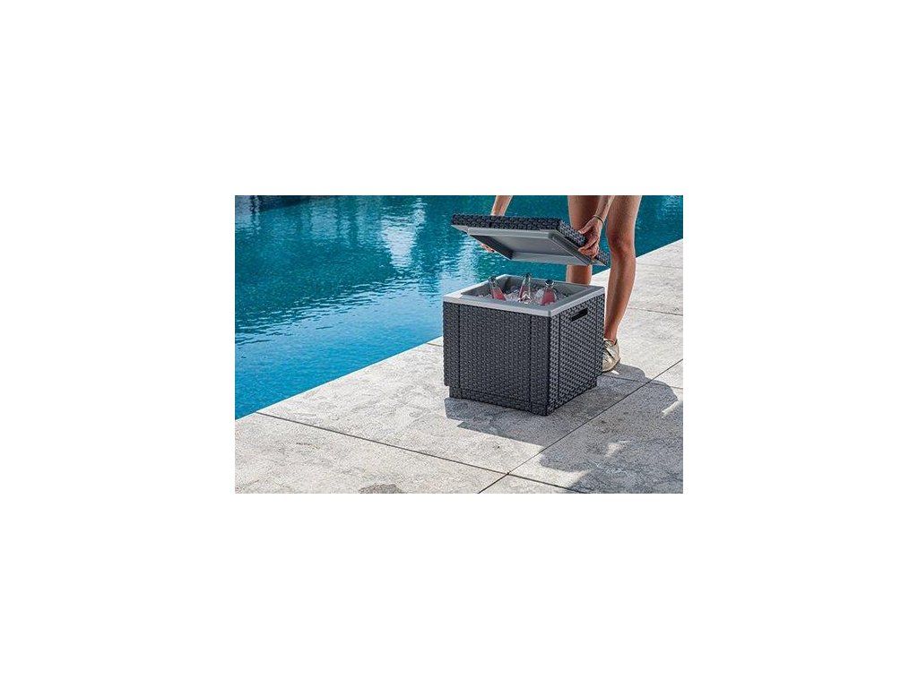 Zahradní box Ice Cube značky Keter má multifunkční využití. Nejenže zastane funkci praktického odkládacího stolku, zároveň ho použijete jako další místo k sezení pod vaší pergolou. Máte chuť na vychlazený nápoj? Sundejte víko, uložte do stolku láhve s limonádou, džusem nebo pivem a udržte je studené, aniž byste museli neustále vstávat a chodit do domu k ledničce.