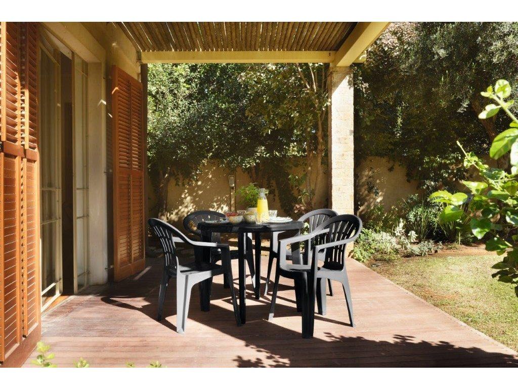 Jednoduchý a praktický kruhový stůl Keter Lisa v elegantní grafitové barvě skvěle poslouží na každé terase, pod pergolou, k posezení u bazénu nebo kdekoliv jinde. Je vyrobený z kvalitního plastu odolného proti UV záření, kterému neublíží ani změny počasí. Plastový povrch stolu se dá velmi snadno omýt.