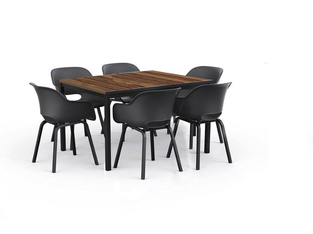 Díky unikátnímu povrchu DecoCoat odolá stůl nepříznivým povětrnostním vlivům a poškrábání. Zároveň si zachovává svou barvu. Textura navíc připomíná skutečné dřevo. Konstrukce je vyrobená z kovu, proto je stůl pevný a odolný.