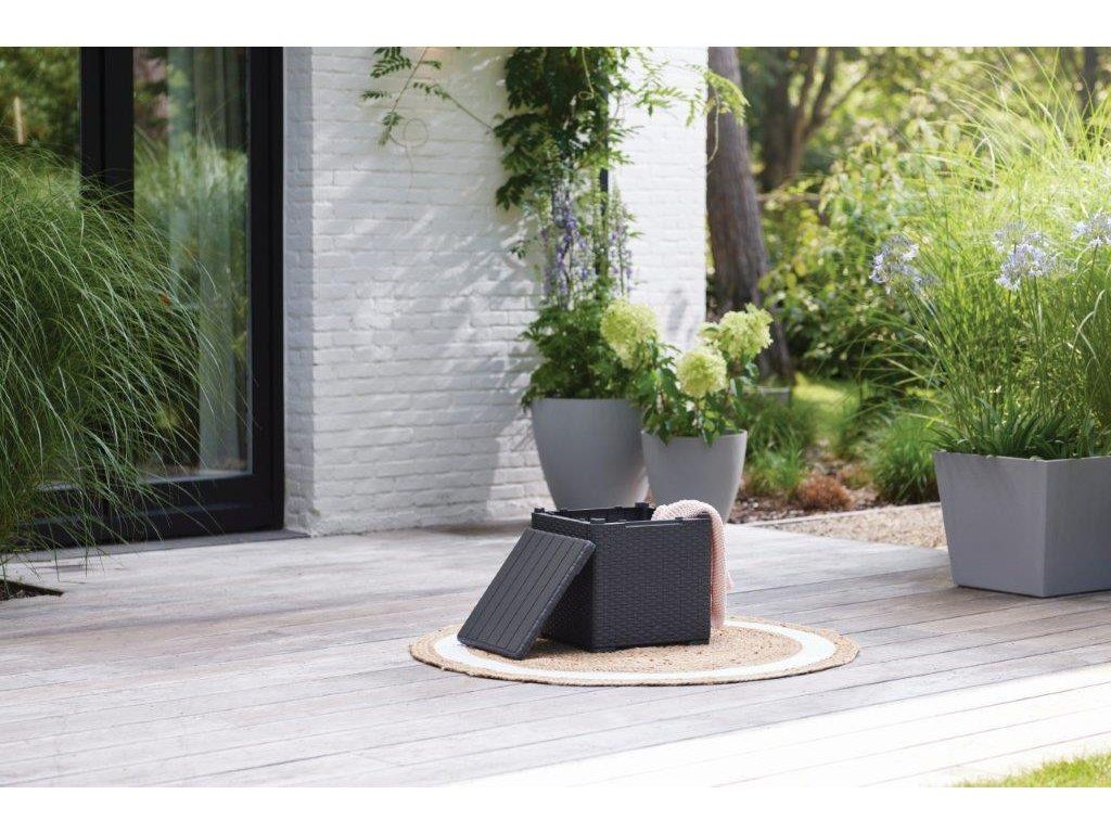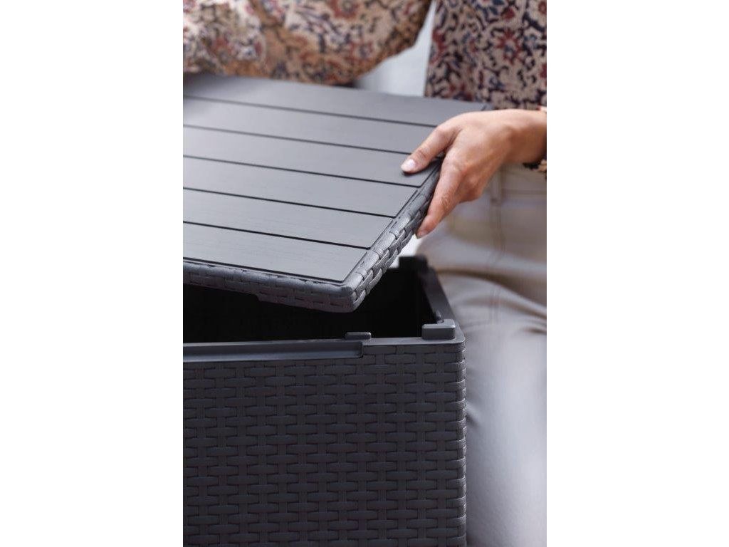 Zahradní stolek a box v jednom Keter Vigo elegantně doplní vybavení vaší terasy, balkónu i zahrady. Díky krásnému designu připomínající ratan ho skvěle zkombinujete s ostatním nábytkem. Navíc nezabere příliš místa. Patří mezi nejmenší a nejlevnější odkládací stolky a boxy od značky Keter.