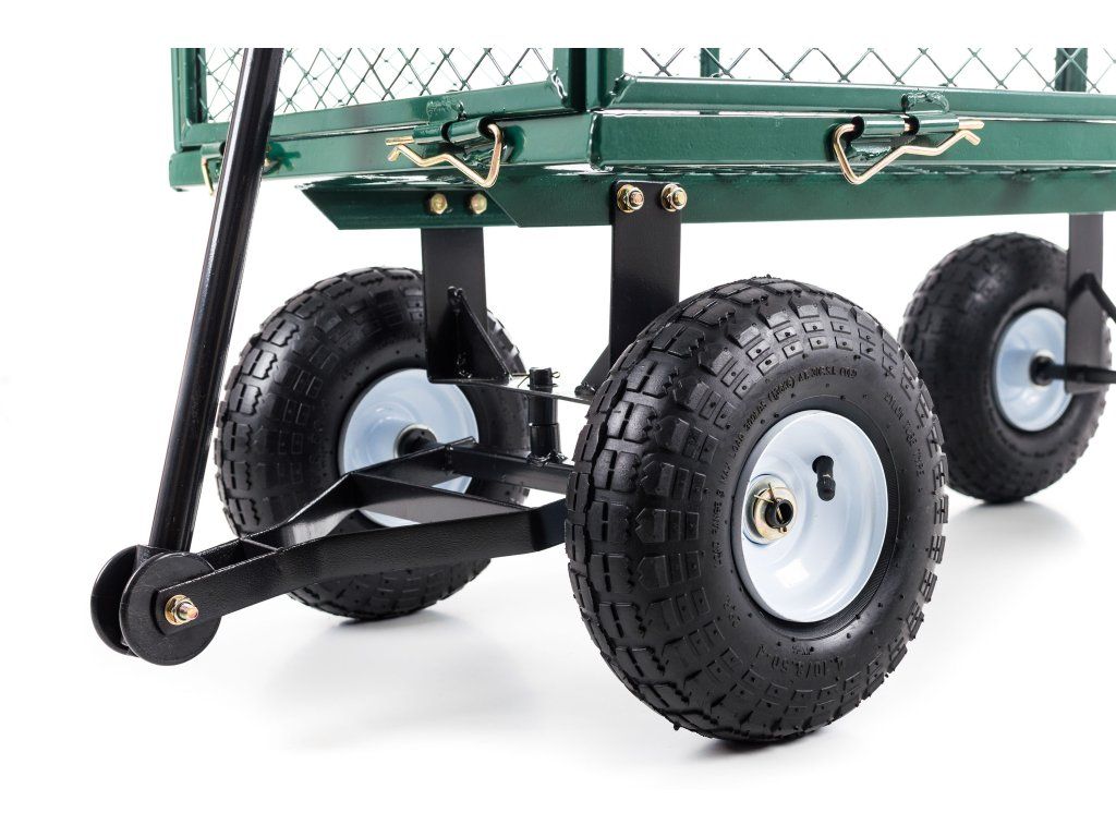 Kovový zahradní nebo stavební vozík G21 GD 90 má skládací korbu s kovovým výpletem o objemu 90 l, nosnost 200 kg a 4 nafukovací kola na dvou nápravách, z nichž jedna je řídící. Vozík se díky tomu snadno ovládá a velmi snadno a pohodlně se s ním manipuluje.