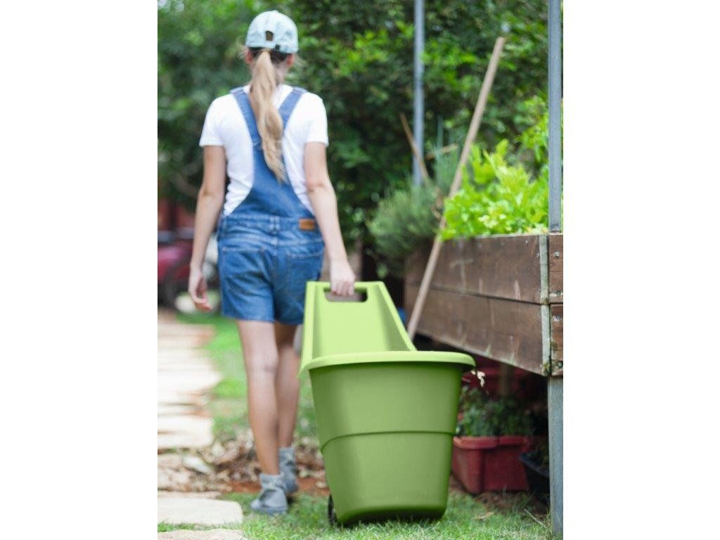 Promyšlený funkční design zahradního koše na kolečkách usnadní převážení zahradního materiálu, nákupu, potřebného nářadí či mokrého prádla na pověšení. Lze jej táhnout nebo tlačit a můžete v něm vozit například kameny, kůru, kompost, plevel či vodu, což vám ohromně pomůže při vašem zahrádkářském snažení. Vozík je vyrobený z recyklovatelné syntetické pryskyřice, takže jeho koupí podporujete udržitelnost naší planety. Navíc je tento materiál odolný vůči extrémním povětrnostním vlivům a UV záření, takže vám bude sloužit spolehlivě a po velice dlouhou dobu.