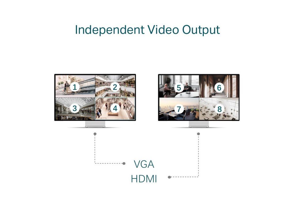Na rekordéru najdete porty HDMI a VGA pro připojení monitoru či jiného zobrazovacího zařízení a také audio vstup i výstup pro obousměrnou konverzaci. Tato funkce se hodí například při nečekaných návštěvách či při vyzvedávání zásilek z rukou kurýra. Nechybí ani konektory pro připojení k síti Ethernet, který zajistí spolehlivé kabelové připojení pro nonstop nahrávání a monitoring záznamů.